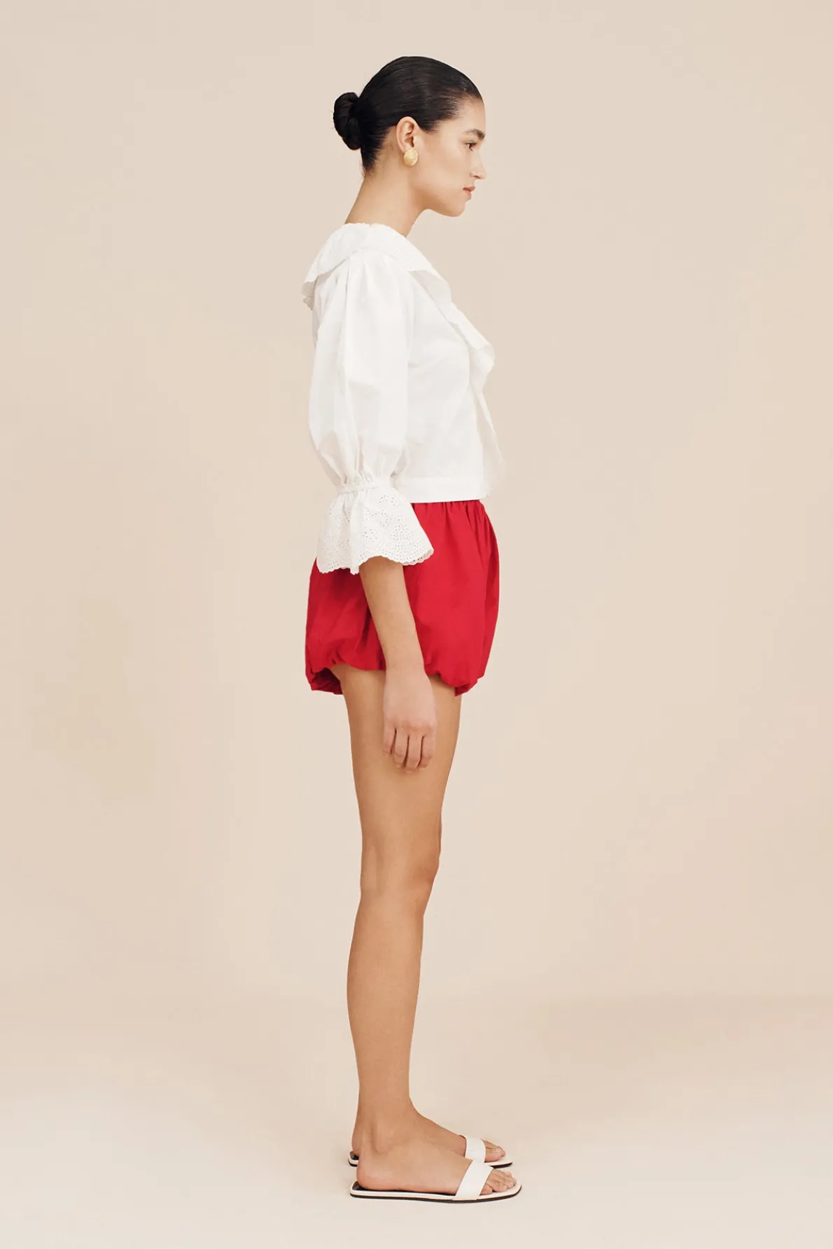 Crafted from crisp cotton in a festive red hue, the Aurelia are a bloomer style short with a flattering high-rise waist and tapered, cuffed hems. Coordinate yours with the matching Beryl Top.