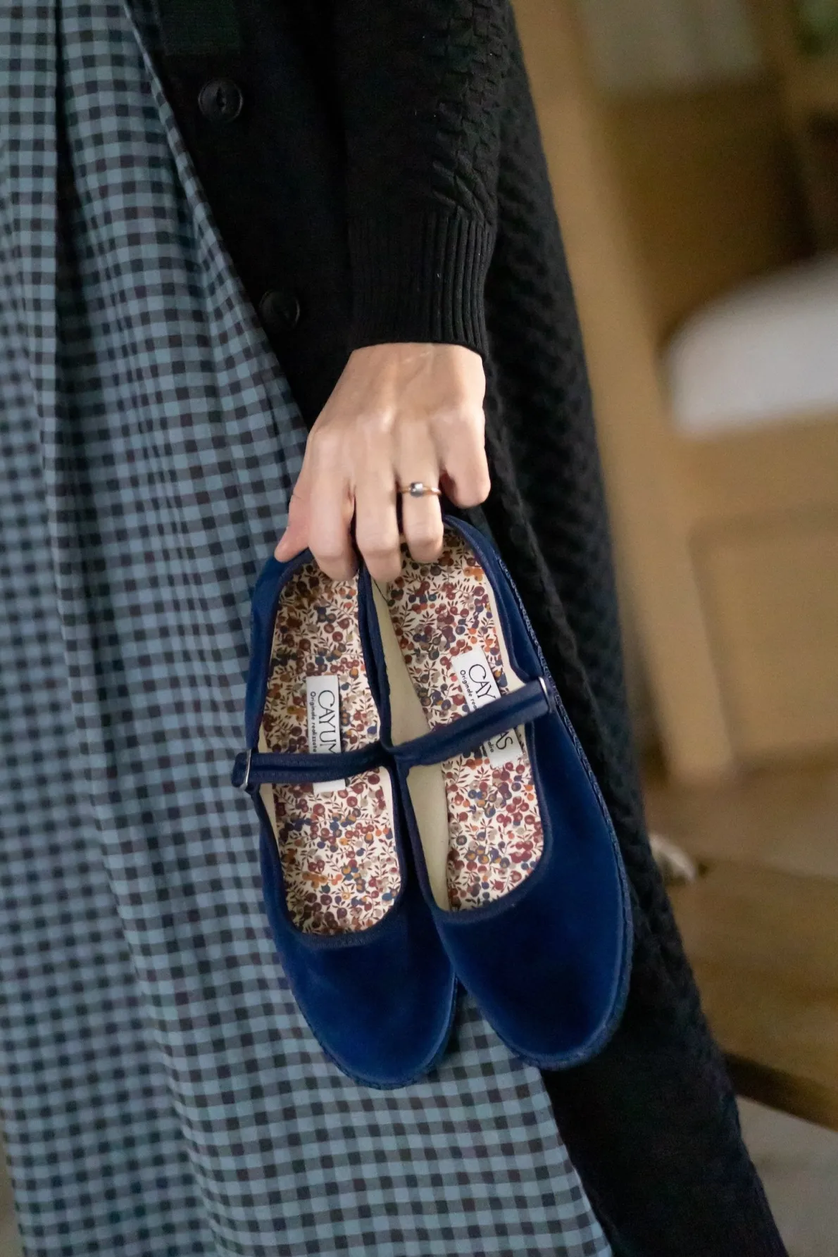 Handcrafted by artisans in Northern Italy, the Boheme Slippers by Cayumas will quickly become your most cherished everyday shoe. Detailed with English liberty fabrics on the sole, they feature an adjustable strap with a nickel-free buckle, round toes and are crafted from organic velvet.