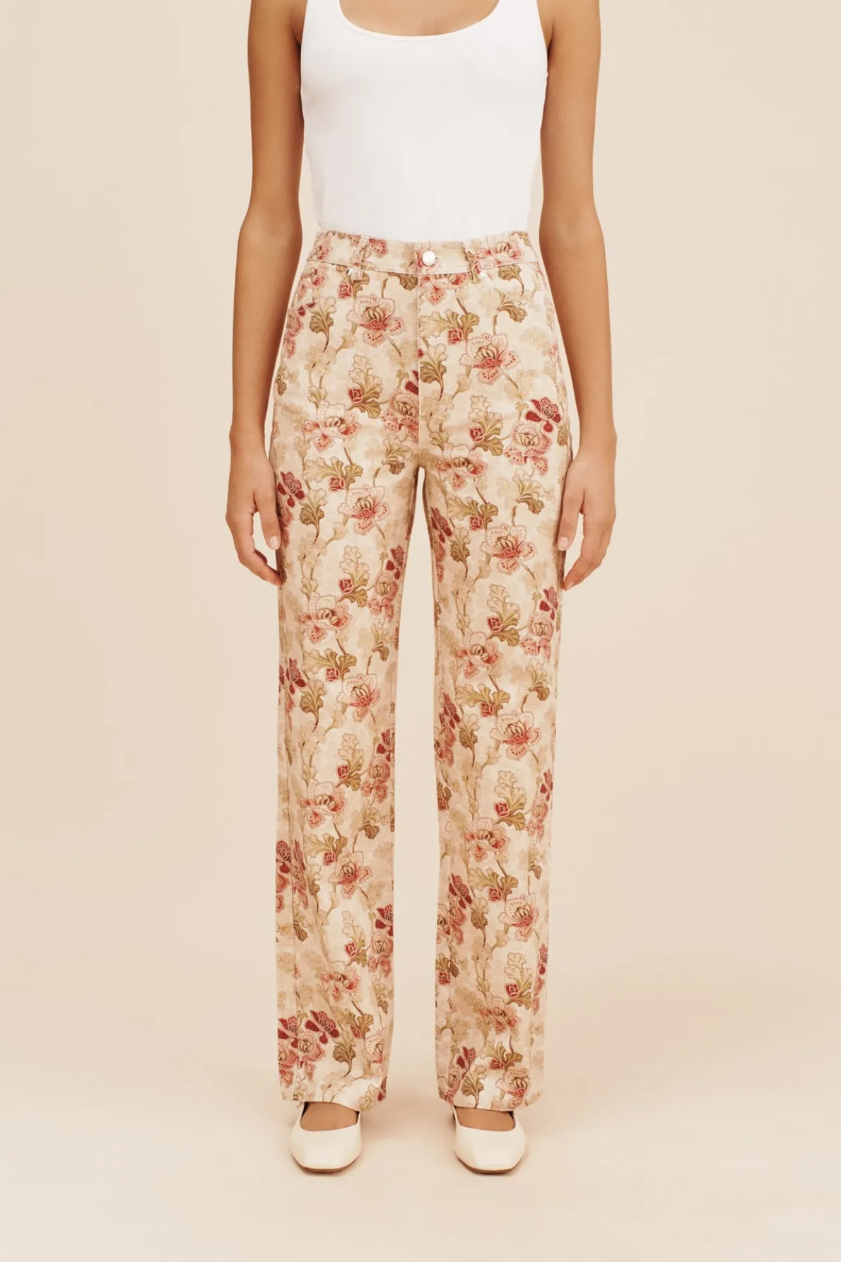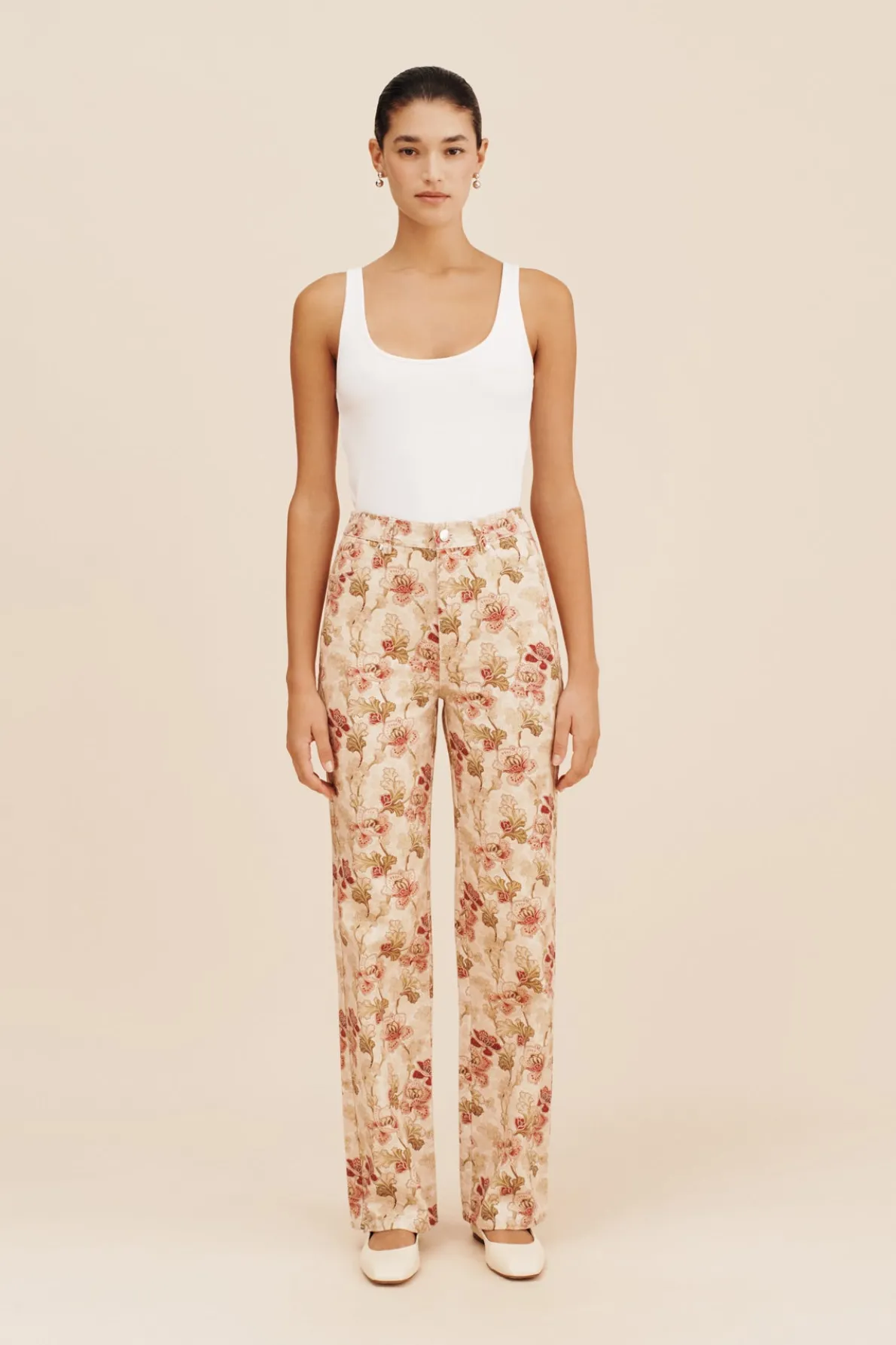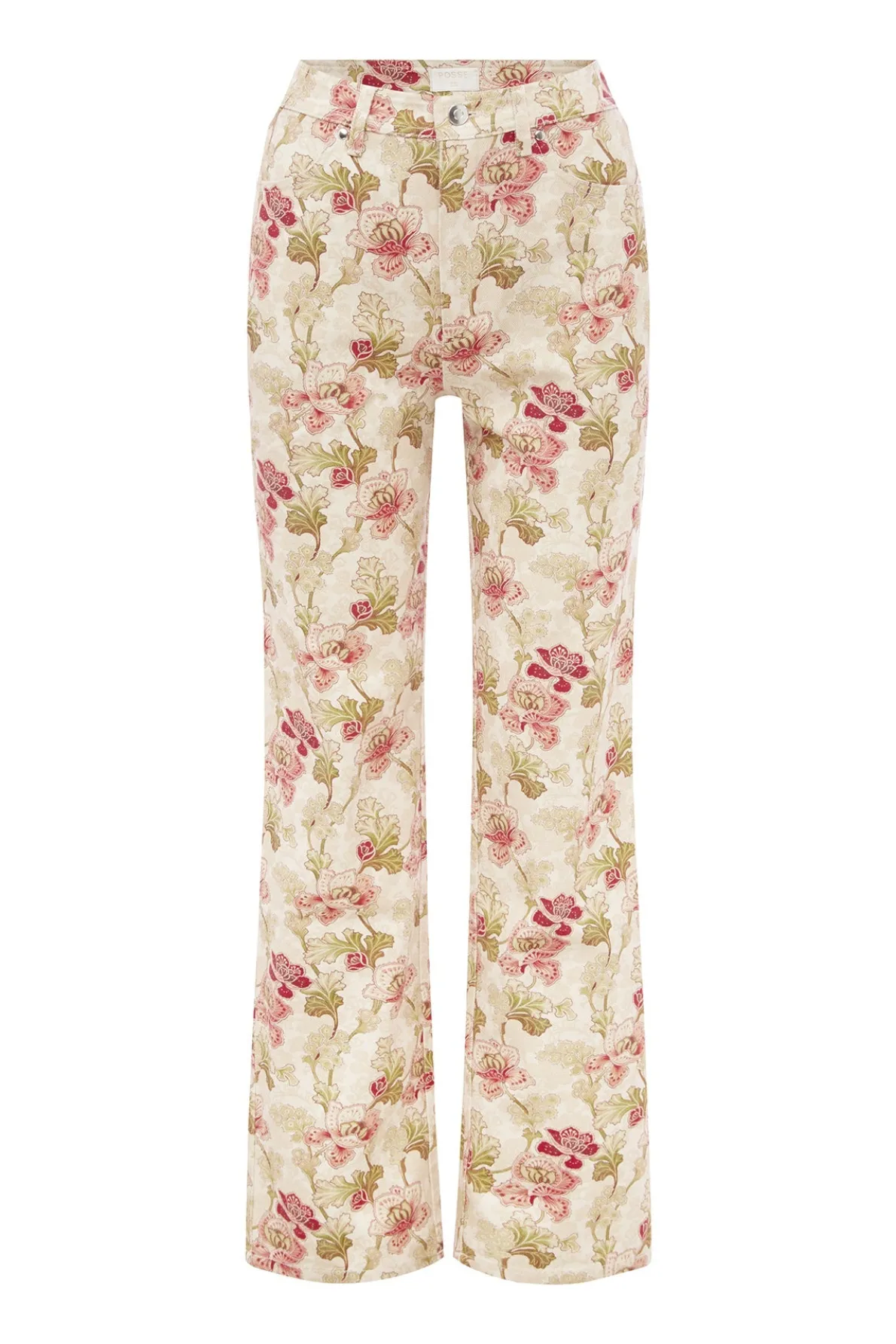 The Celine Jeans are crafted from rigid denim and patterned with an exclusive vintage-inspired POSSE print. Designed to sit high on the waist, they feature straight legs, belt loops and a five-pocket construction. Style them with the Gigi Gilet or a simple white tank and slides.