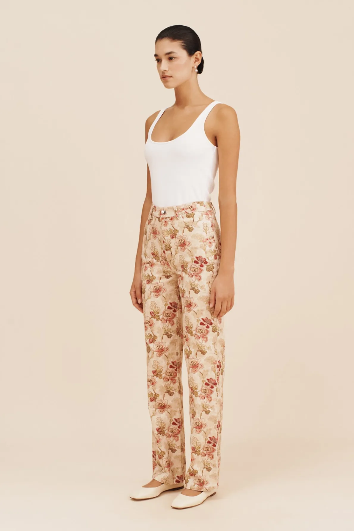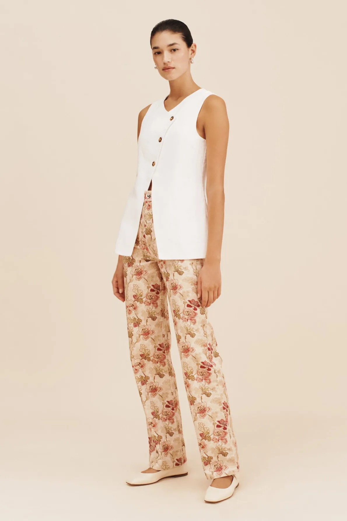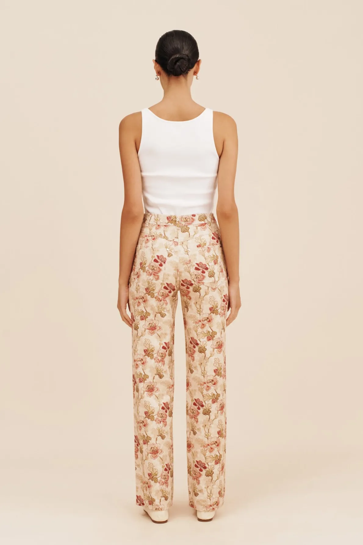The Celine Jeans are crafted from rigid denim and patterned with an exclusive vintage-inspired POSSE print. Designed to sit high on the waist, they feature straight legs, belt loops and a five-pocket construction. Style them with the Gigi Gilet or a simple white tank and slides.