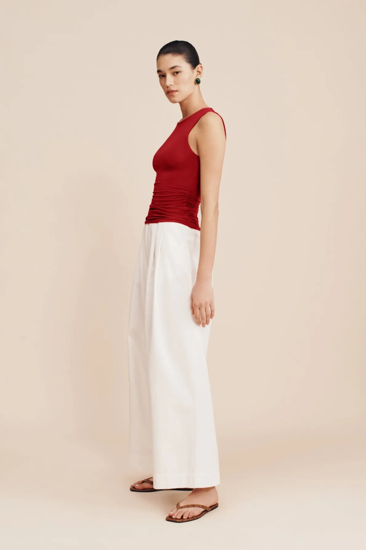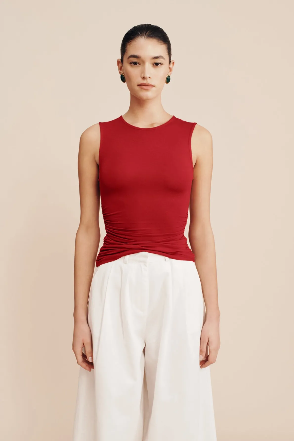 The Isabela Top features an elegant high neckline and is made from soft, stretch-jersey. Designed for a close, comfortable fit, it features gathers throughout both sides. Style yours with the Mason Skirt.