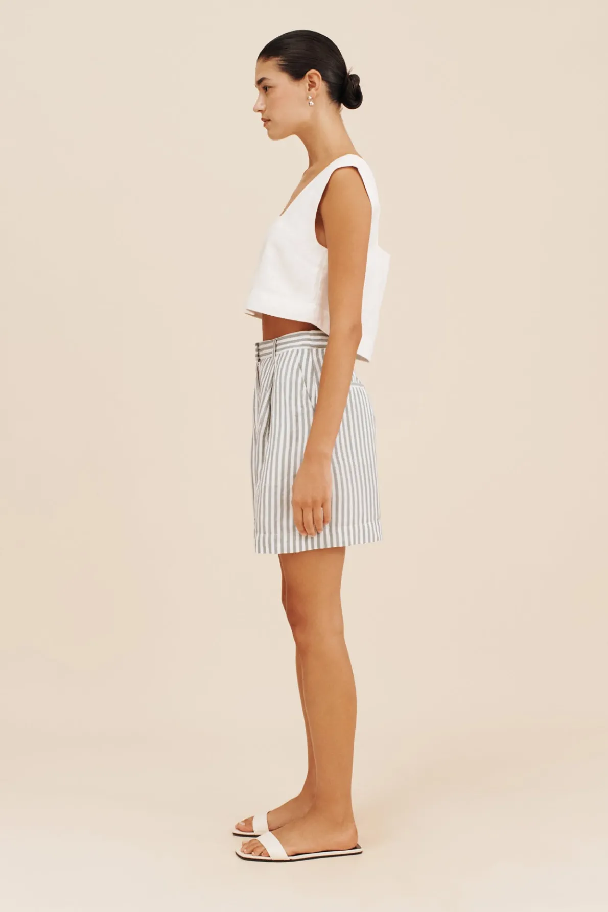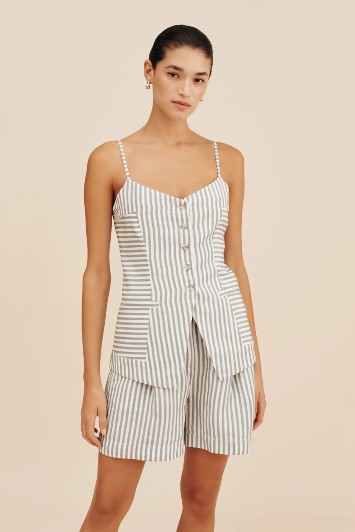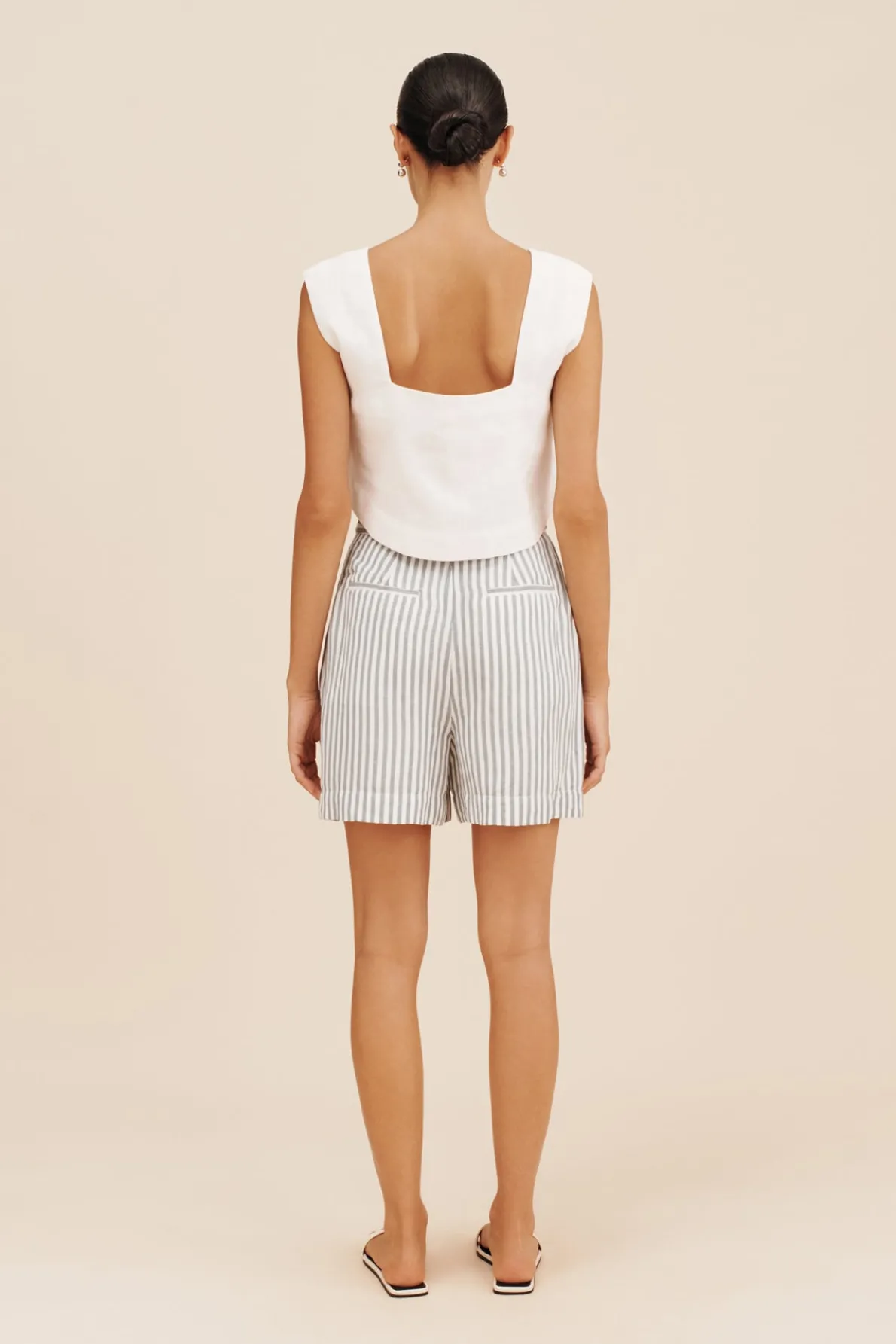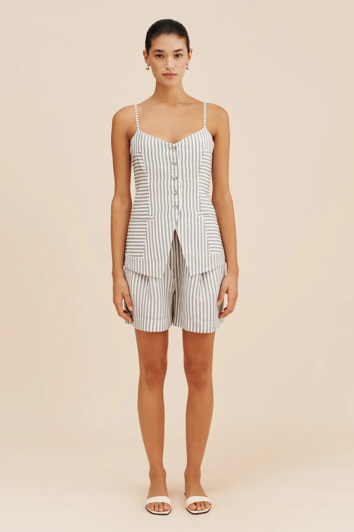 Patterned with classic stripes, the Lorenzo Shorts are designed for a relaxed fit. They feature a high-rise waist, side pockets and belt loops. Style yours as a set with the Zadie Shirt or pair it with a simple white tank and slides.