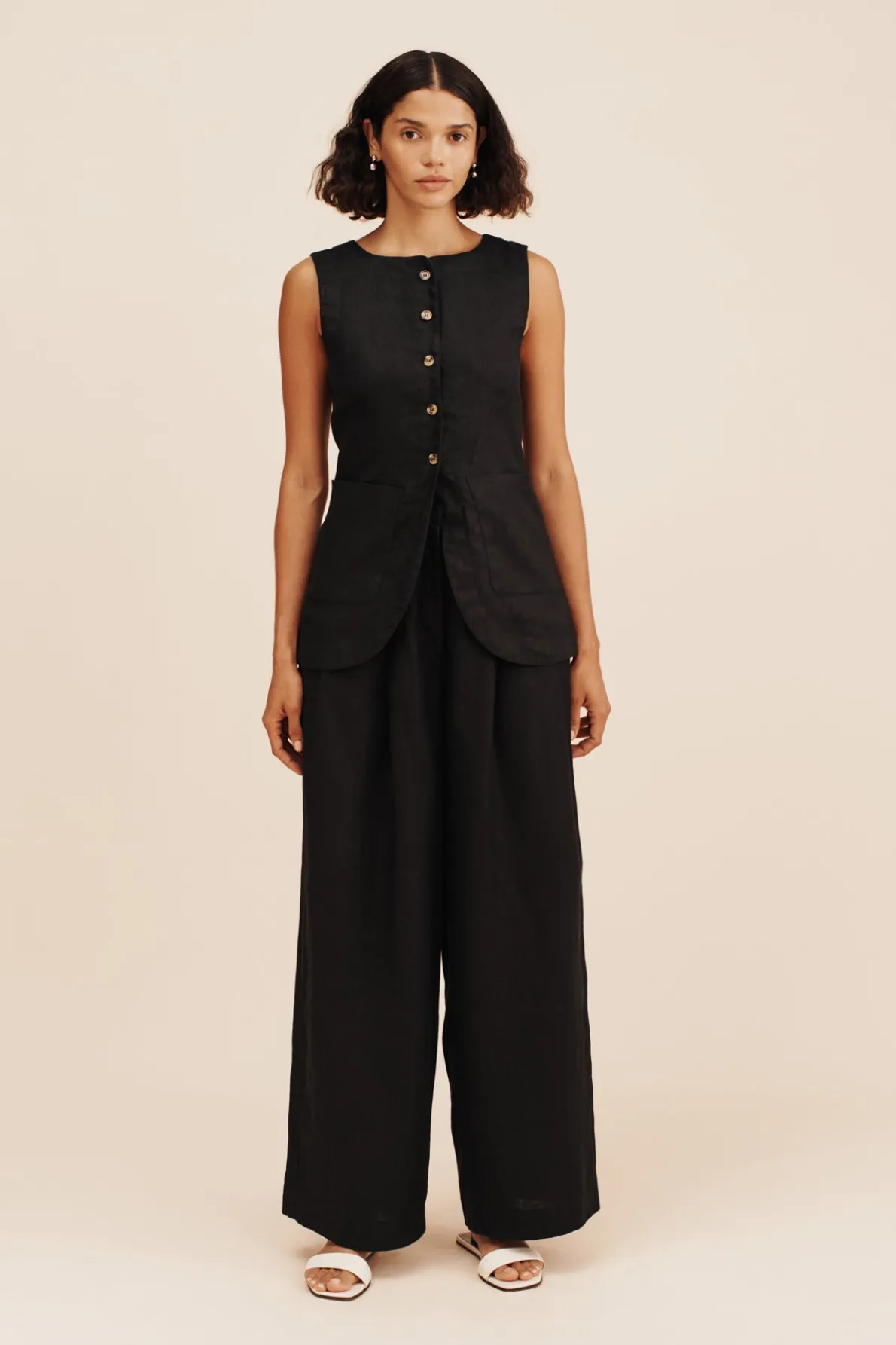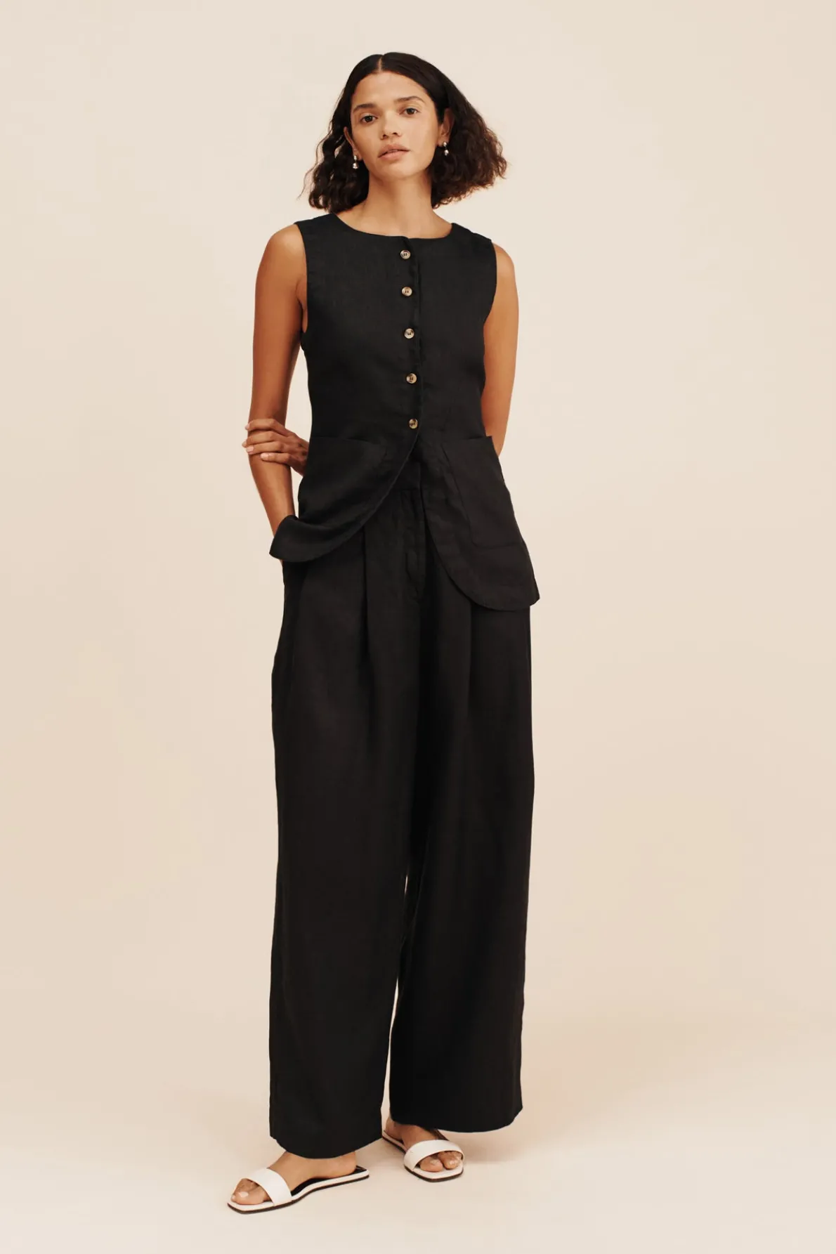 The Wyatt Trousers are cut from lightweight linen and are designed for a relaxed, boxy fit. They feature roomy, wide legs and front pleats to create volume. They have an internal adjustable waist feature which allows you to customise the fit. Wear yours as a set with the matching Poppy Top or pair them with a simple tank and slides.